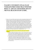 Dernier document publié: de celaWALDEN UNIVERSITY FINAL EXAM NURS 6670 PMH NURSE PRACTITIONER ROLE 11: ADULTS AND OLDER ADULTS MENTAL HEALTH STUDY GUIDE.